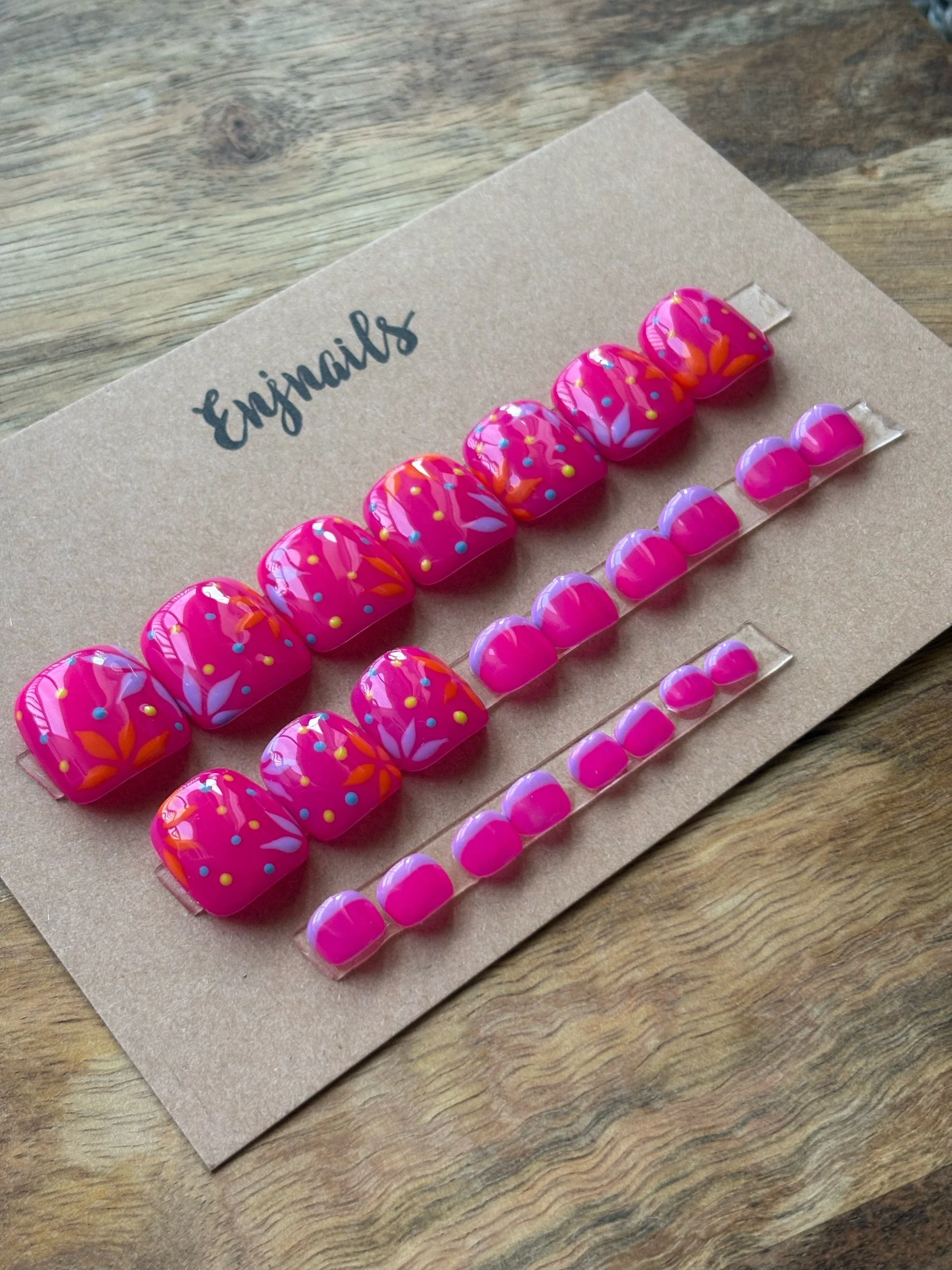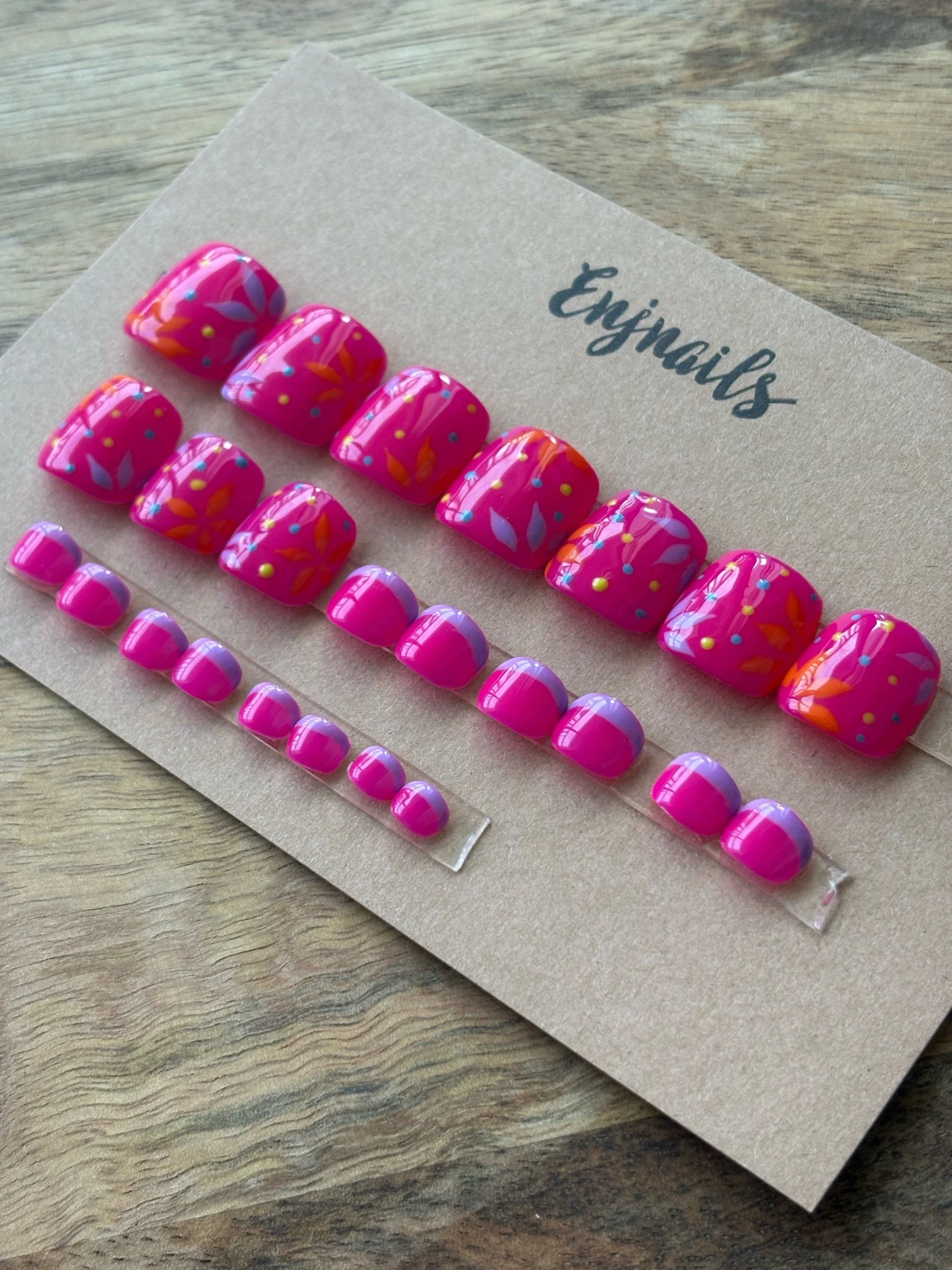 This listing is for PRE-DESIGNED and ready to ship TOE PRESS ON SET. This set is for anyone who doesn’t know their sizes, wants to try out a new shape, or just wants a quick affordable set of nails ready to wear!